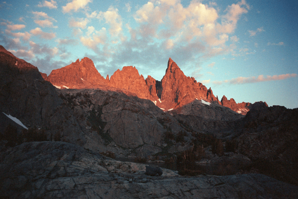 I woke up for sunrise the next morning to see that special alpine glow kiss the tops of the Minarets. I’m addicted to the promise of a new day. And the limited time to capture the perfect sunrise shot adds to the adrenaline rush. Looking back, I wish I had scoped out my shots the day before, as I wasn’t completely happy, but I was still content with what I got.